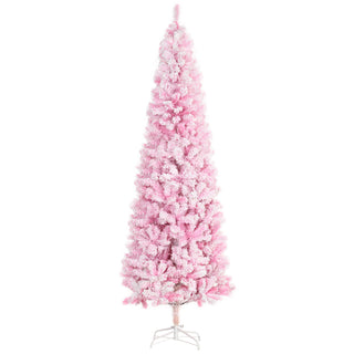 7.5ft Pink Snow-Flocked Artificial Christmas Tree – Slim Pencil Design