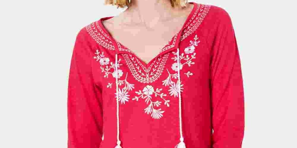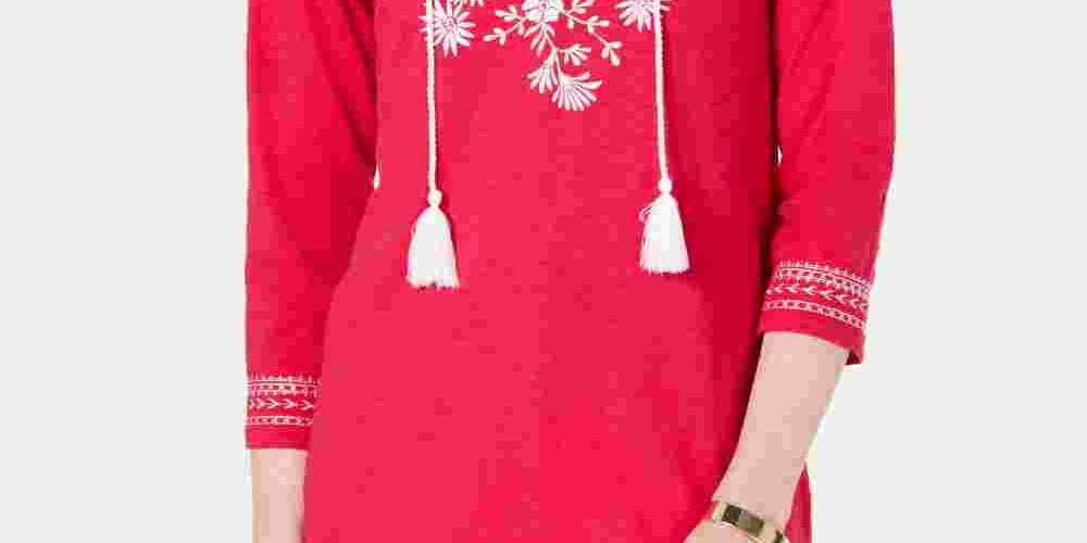 Charter Club Women's Cotton Embroidered Tunic Dark Pink Size Medium