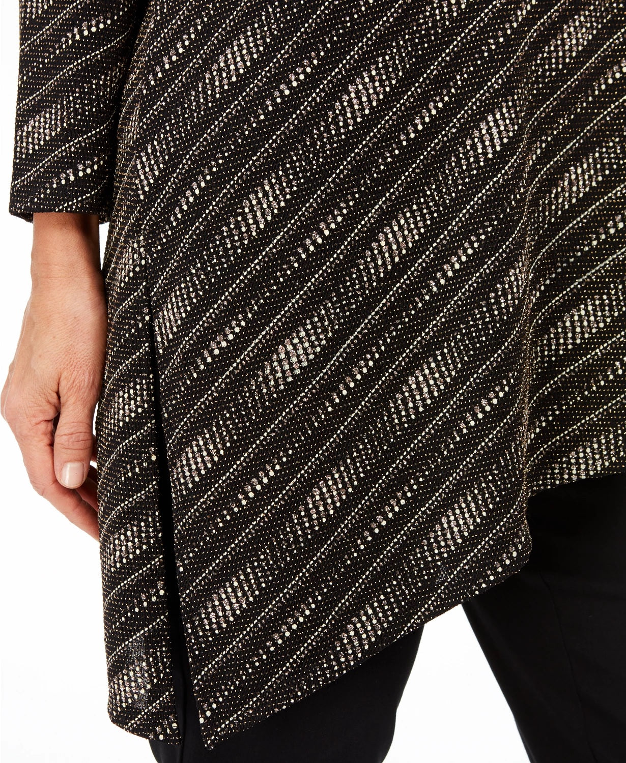 JM Collection Women's Petite Metallic Asymmetrical Top Black Size Petite Small-Medium