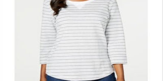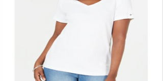 Karen Scott Women's V Neck Cotton Top White Size XX-Large