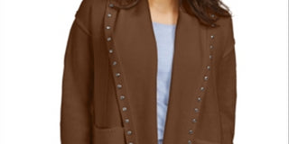 Style & Co Women's Hooded Studded Cardigan Brown Size Petite L