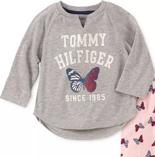 Tommy Hilfiger Toddler Little & Big Girls 2-Pc. Butterfly Pajama Set Gray Size 4-5