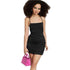 Satin material| Black color| Bodycon style| Lace-up back| Size XS| Short length| Sleeveless design| Suitable for night-outs