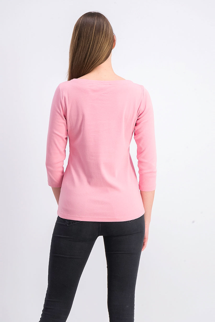 Relaxed fit; hits at hip; approx. 26" long|Due to generous sizing, we suggest sizing down for the perfect fit|Boat neckline|Grommet details at front|3/4-sleeves