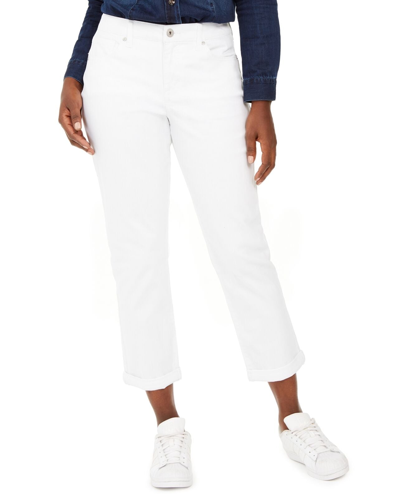 Style & Co Women's Curvy-Fit Cuffed Girlfriend Jeans White Size 12
