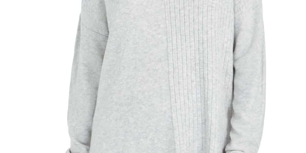 Due to generous sizing, we suggest sizing down for the perfect fit|Ribbed turtleneck|Ribbed and smooth panels at front; high-low hemline with ribbed banding|Drop-shoulder long sleeves with ribbed cuffs