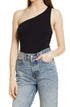 Topshop One-Shoulder Bodysuit In Black Size Large