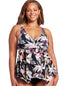 Kona Sol Women's Plunge V-Neck Strappy Back Tankini Top Black Floral Print Size 3X