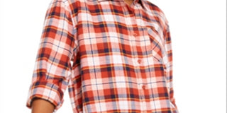 Ultra Flirt Juniors' Plaid Flannel Shirt Red Ochre Size S