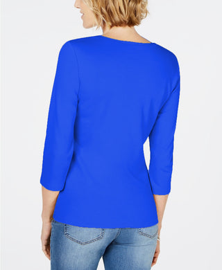 Karen Scott Women's Cotton 3/4-Sleeve Top Blue Size Small