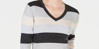 Karen Scott Women's Colorblocked V-Neck Cotton Sweater Brown Size Medium