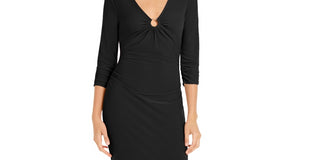 INC International Concepts Women's Ring Hardware Ruched Midi Dress Black Size Large