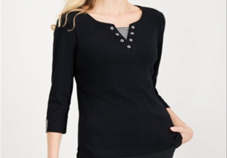 Alfani Women Side Tie Wash Cap Sleeve Jewel Neck Top Blue Size L