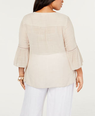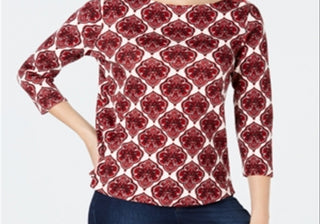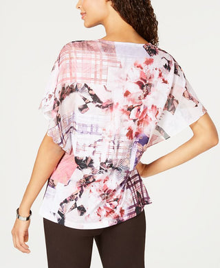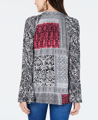 Style & Co Petite Printed Bell-Sleeve Peasant Top Multi Size P/M