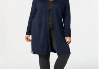 Jm Collection Plus Size Lace-Up-Cuff Duster Cardigan Blue Size 1X