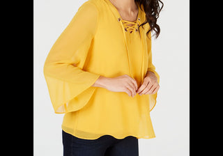 Thalia Sodi Women 3/4 Sleeve V-Neck Lace-Up Printed Top Multi Size S