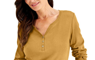 Karen Scott Women's Petite Cotton Henley Shirt Gold Size Petite Small
