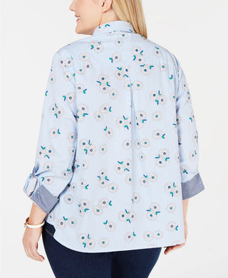 Tommy Hilfiger Women's Plus Size Cotton Printed Top Bright Blue Size 2X
