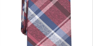 Perry Ellis Men's Dehaven Plaid Skinny Slim Neck Tie Red Size Regular