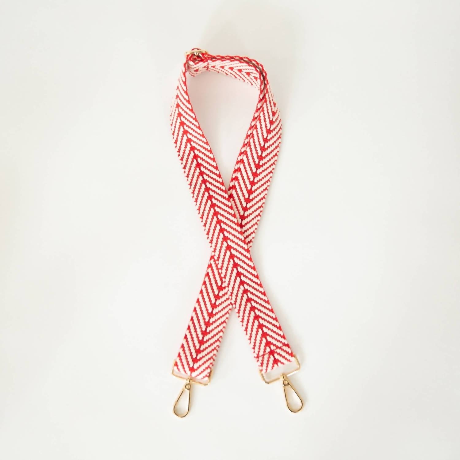 Enhance your handbag collection with the Women's Crossbody Bag Purse Strap by FUNKY MONKEY, a stylish yet functional addition. Crafted in a woven material with vibrant red and white chevron zig-zag patterns, this strap adds a pop of color to any bag. It features an adjustable length for personalized comfort and is accented with gold-colored hardware for a touch of elegance. Embrace versatility and refresh your look effortlessly with this chic accessory.
