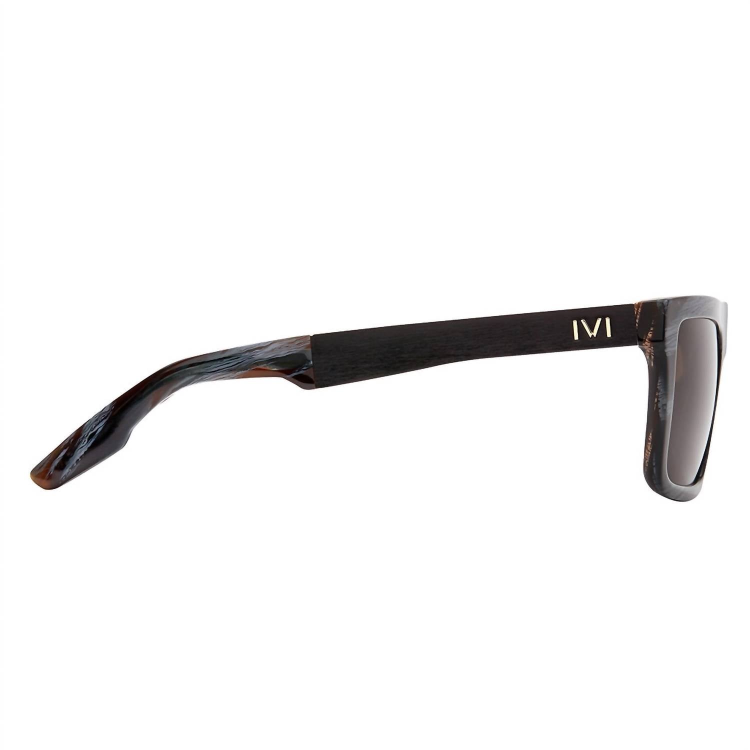 Introducing the Men's Sepulveda Sunglasses by IVI VISION, featuring a polished black and bronze polarized finish. The square flat-top design boasts an Italian acetate frame, aluminum temple arms, and durable stainless steel hinges. Carl Zeiss nylon lenses ensure 100% UVA and UVB protection, optical purity, and impact resistance. With laser-etched details and adjustable temple tips, they combine style and comfort for the modern pioneer.