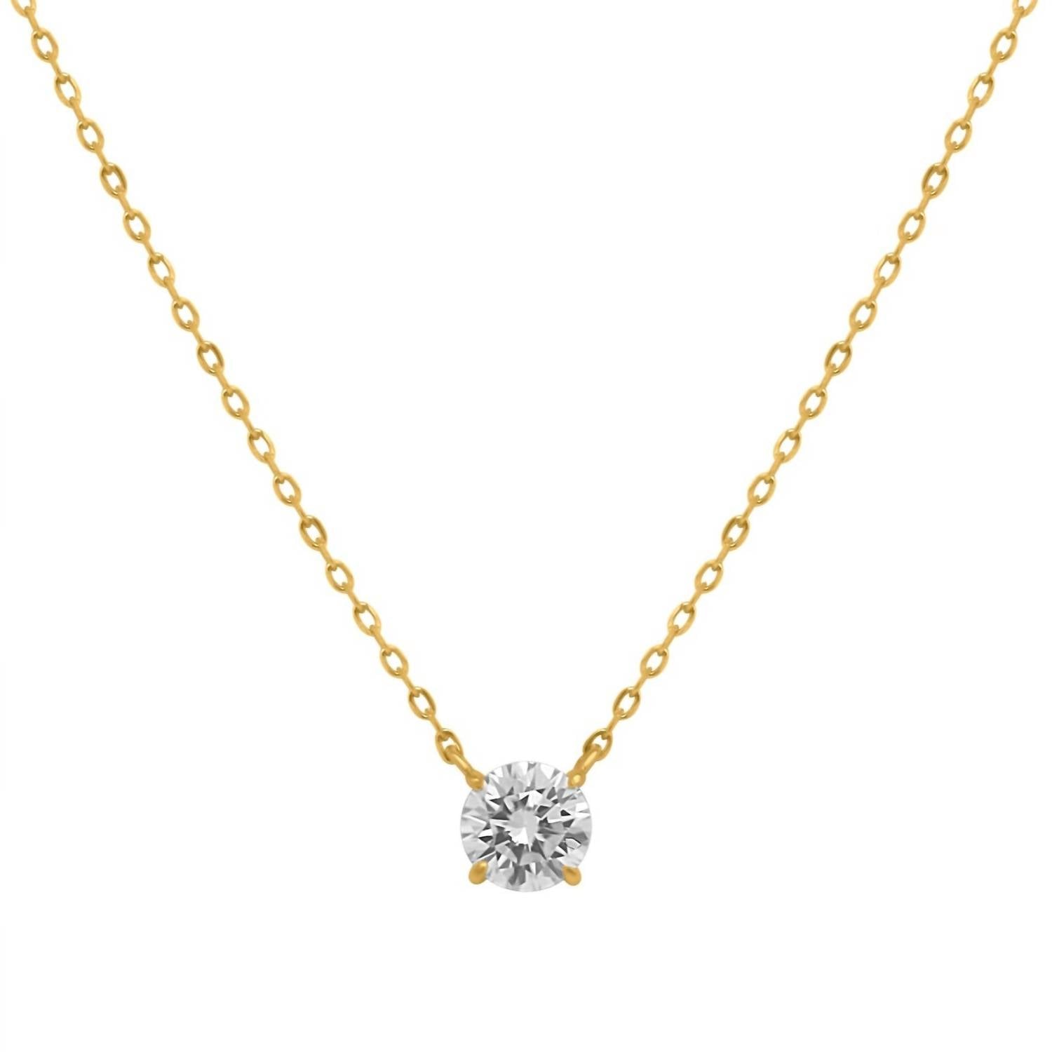 Discover the Allyanna Gifts Women's Prong Round Moissanite Necklace, a fine jewelry piece that adds a subtle touch of elegance to any outfit. Crafted with gold plating and featuring a sterling silver base, this necklace holds a certified 4-prong round moissanite for a stunning sparkle. Perfect for special occasions or everyday wear, it's a versatile addition to your jewelry collection.