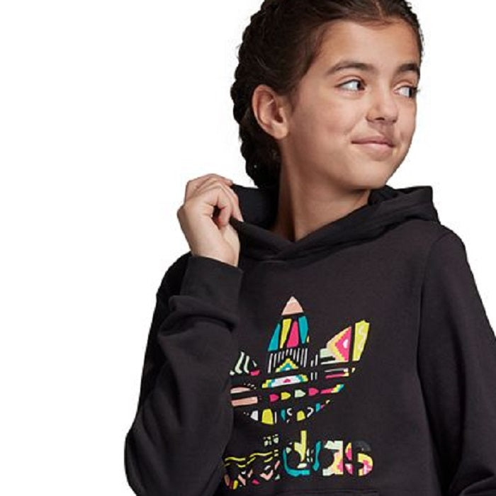 kangaroo pocket at front; attached hood| ribbed at cuffs and hem| polyester/cotton| machine washable