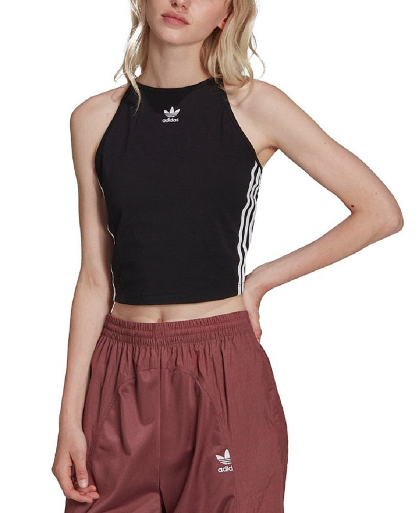 adidas Women's Halter Neck Crop Tank Top Black Size Large