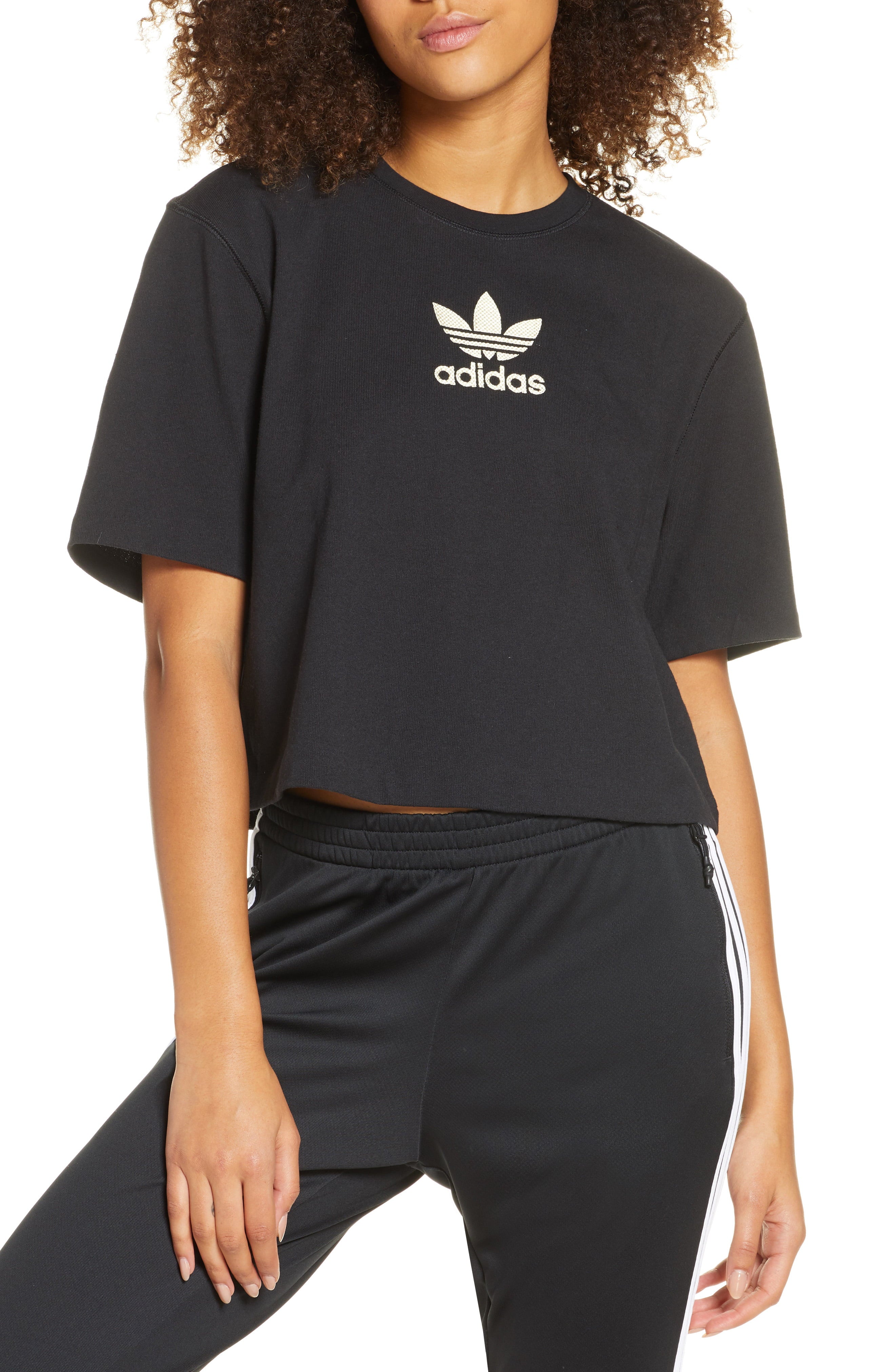 Go for a touch of luxe with this all-cotton top from adidas Originals| a cropped T-shirt with an embroidered gold logo at the front.| INSPIRED FOR; Athleisure| Ribbed crewneck; embroidered logo at front| All cotton| Machine washable| Imported