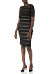 Elevate your wardrobe with the Short Sleeve Jersey Mesh Dress by Adrianna Papell, perfect for a sophisticated spring engagement. This mini bodycon dress in a chic Black Pale Pink features short sleeves and a refined boatneck, highlighted by elegant stripe patterns. Made from 96% Polyester and 4% Elastane, it offers a soft yet structured fit accentuated with a zip closure. For lasting elegance, dry clean only.