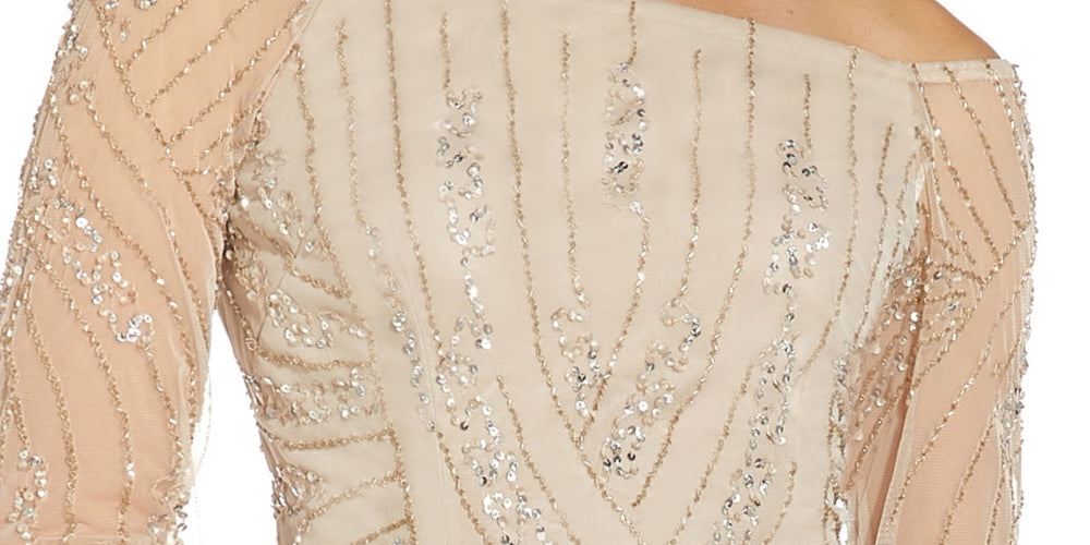 Adrianna Papell Women's Beaded Off The Shoulder Top Beige Size 16