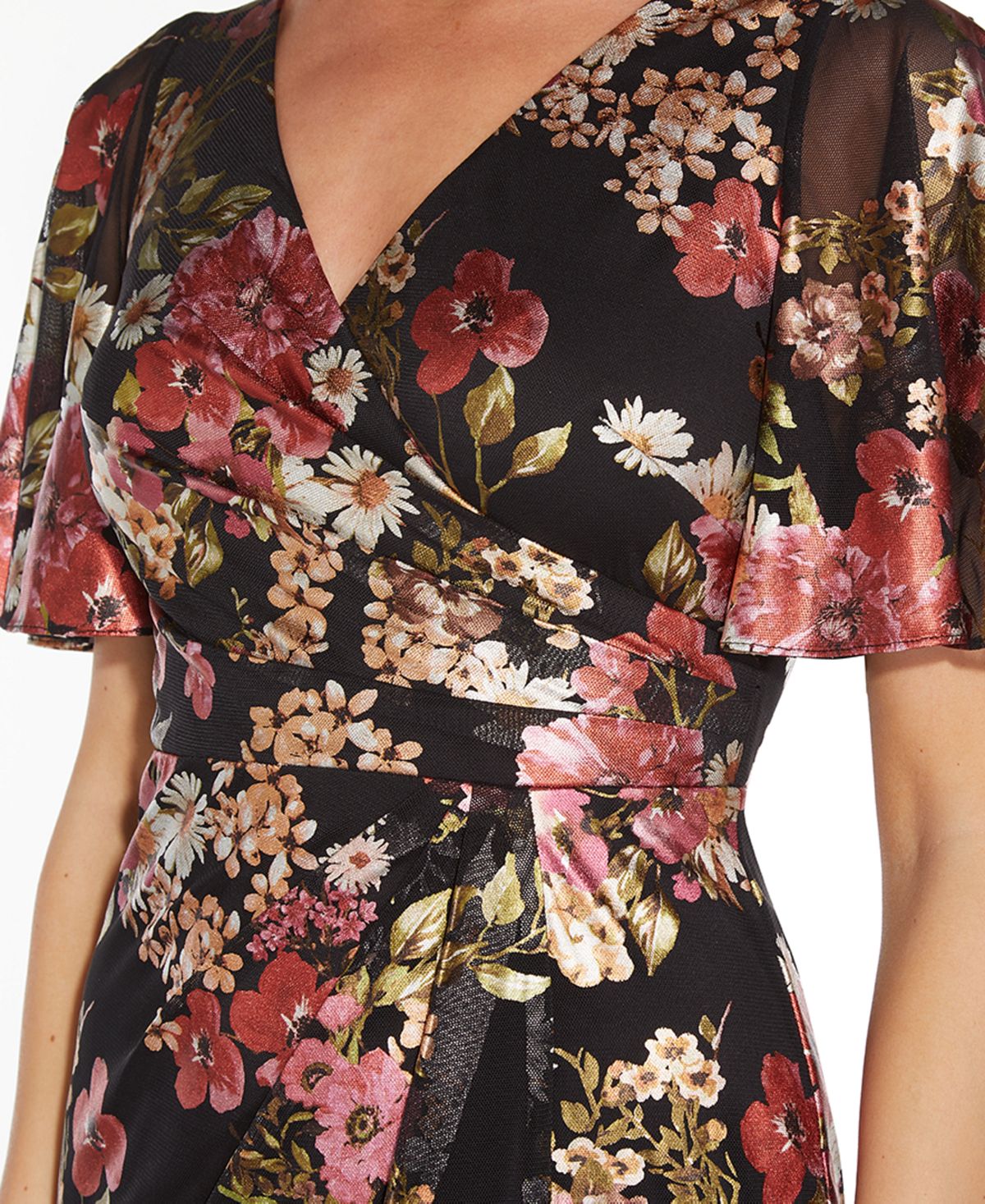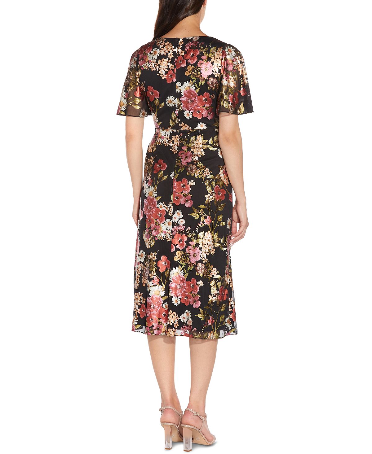 Metallic florals make a bold statement on this perfect midi-length dress by Adrianna Papell. A surplice neckline adds an extra-flattering touch.| Surplice neckline; Midi silhouette| Back zipper closure| Lined| IMPORTANT NOTE; This item arrives with a return tag attached and instructions for removal. Once the tag is removed from the dress| this item cannot be returned.| Polyester/elastane; lining; polyester