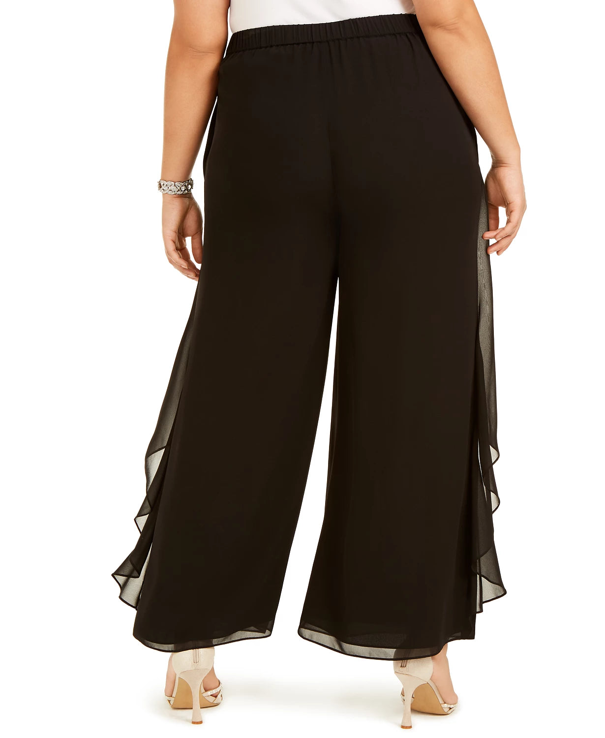 Approx. inseam 30" long. Length is based on size 14W and varies 1/4" between sizes|Mid rise; wide leg|Hidden back zipper with hook-and-eye closure|Tulip flutter draping on front of pant|IMPORTANT NOTE: This item arrives with a return tag attached and instructions for removal. Once the tag is removed from the dress, this item cannot be returned.|Polyester