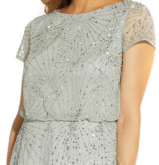 Adrianna Papell Women's Beaded Blouson Gown Blue Size 16