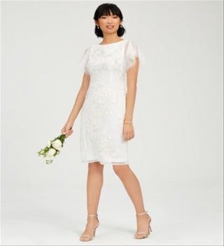 Adrianna Papell Women's Embroidered Floral Sheath Dress White Size 2
