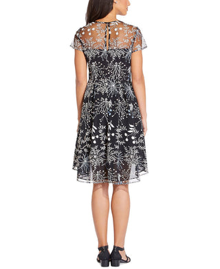 Adrianna Papell Women's Embroidered Illusion Neck Dress Black Size 10