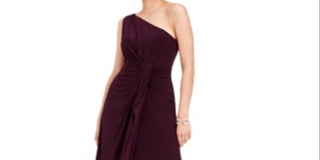Adrianna Papell Women's Ruffled One-Shoulder Gown Purple Size 18