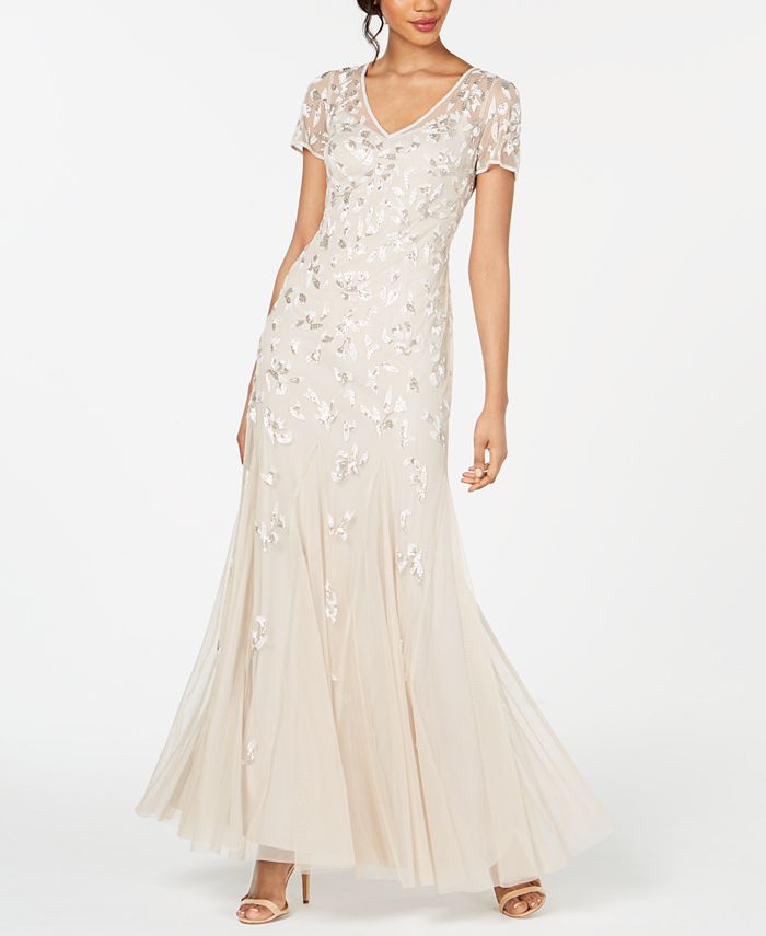 Adrianna Women's Papell Embellished Blouson Gown White Size 8