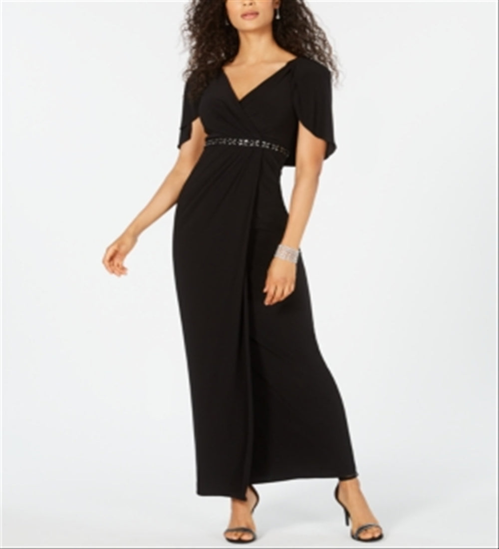 Adrianna Papell Women's Embellished Back Asymmetrical Gown Black Size 4