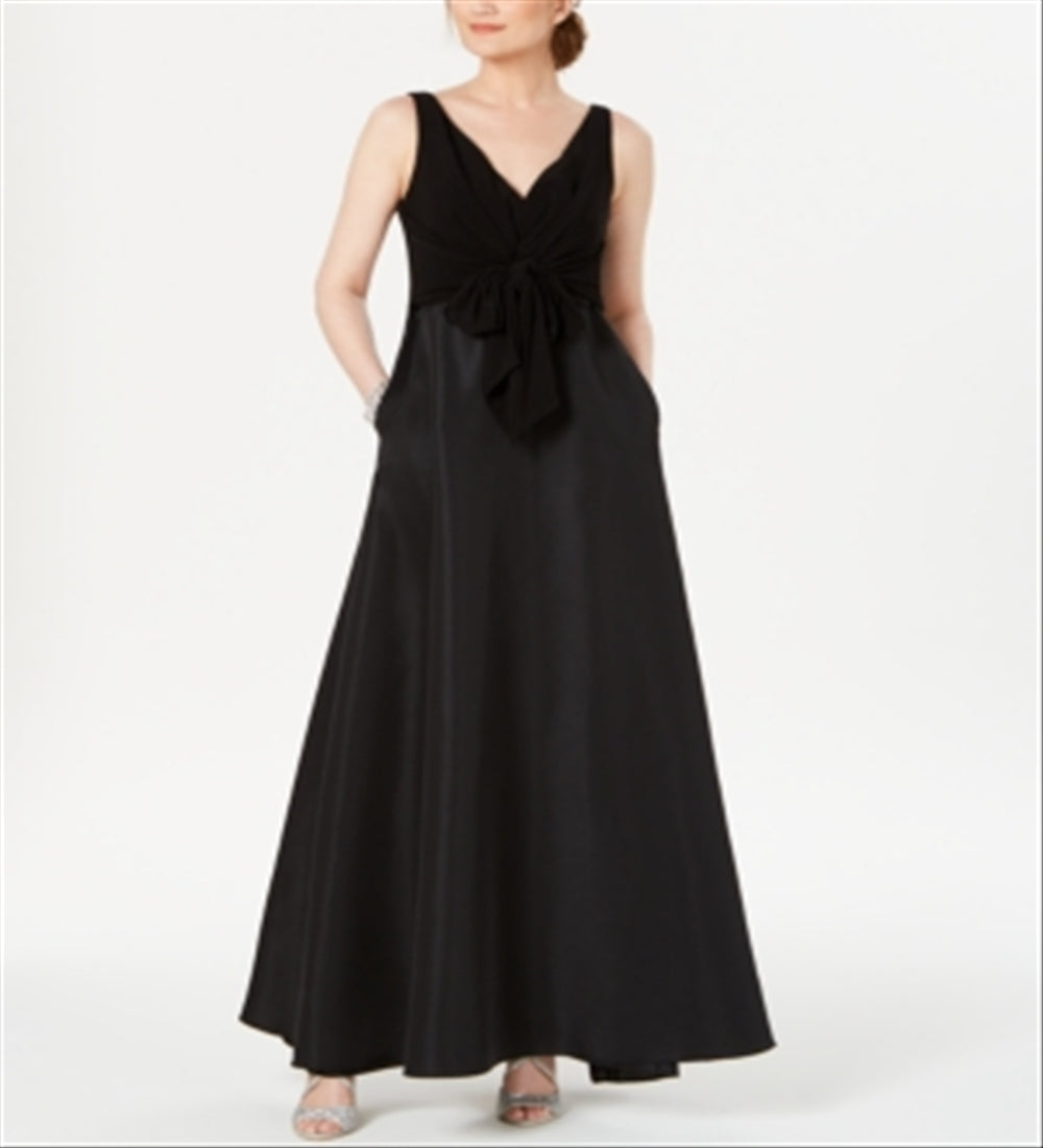 Adrianna Papell Women's V Neck Tie Waist Gown Blue Size 6
