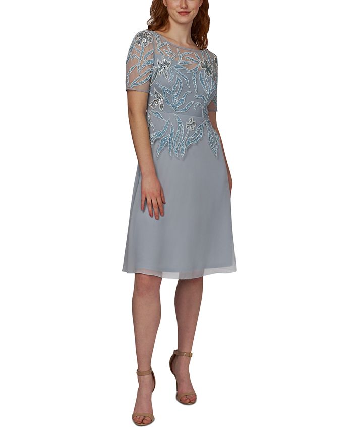 Adrianna Papell Women's Beaded Cocktail Dress Blue Size 4