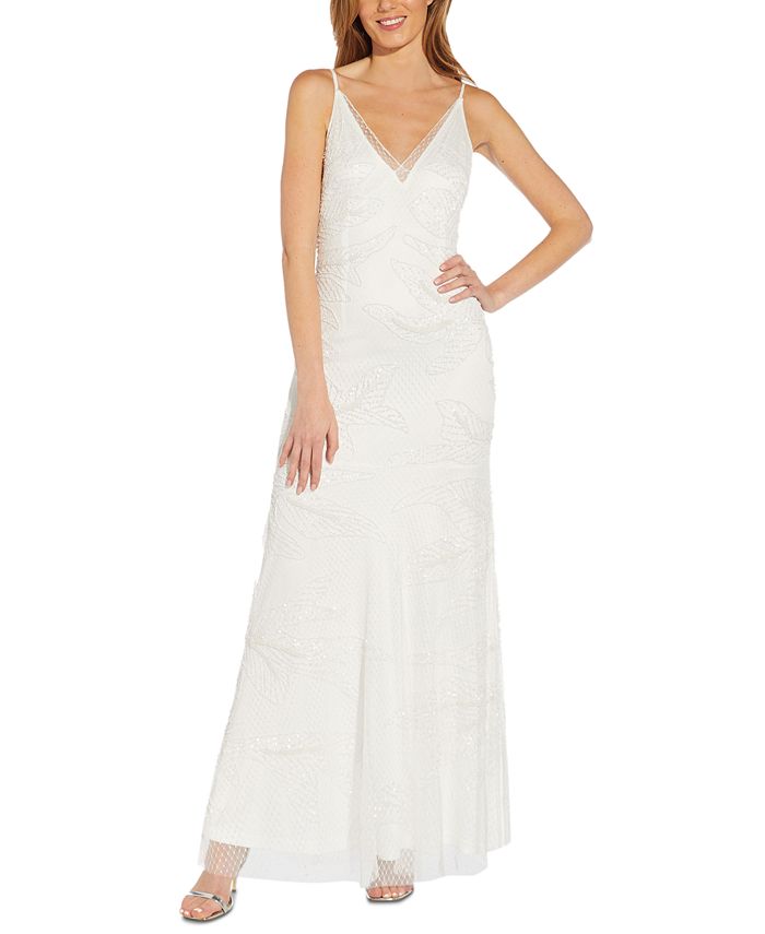Adrianna Papell Women's Beaded Sequined Dress White Size 18
