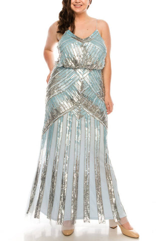 Aidan Mattox - 3/4 Sleeve Sequined Dress