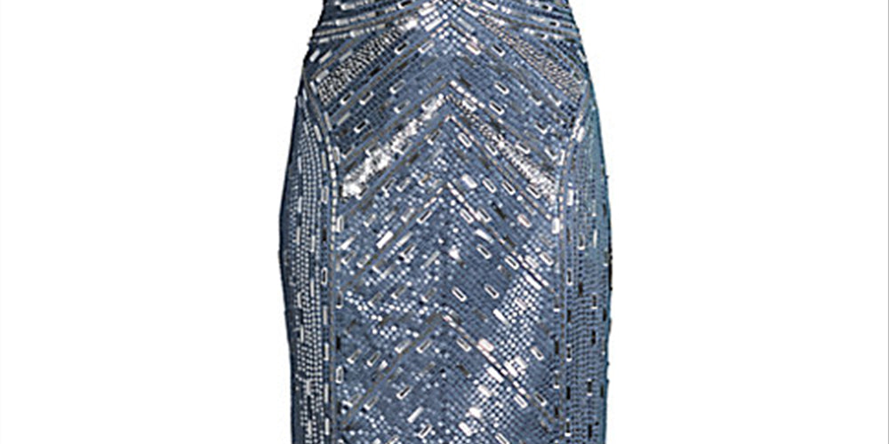 Intricate geometric beading adorns this keyhole puff-sleeve MIDI dress| Dress Collections - Aidan Mattox > Saks Fifth Avenue > Barneys| Aidan Mattox| Color; Blue Grey| Size; 6