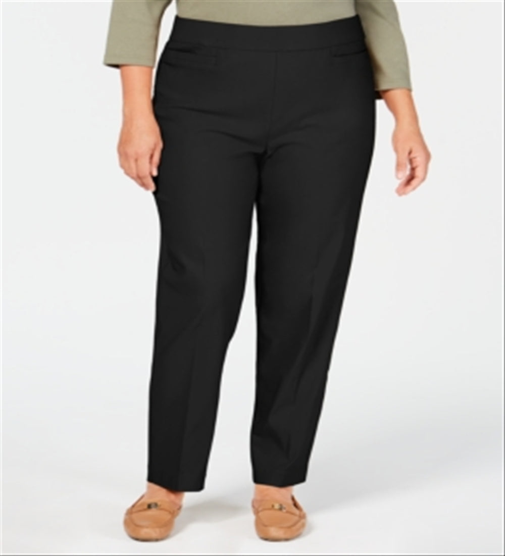 Alfred Dunner Women's Classics Pull On Straight Leg Pants Black Size 16