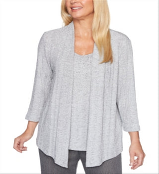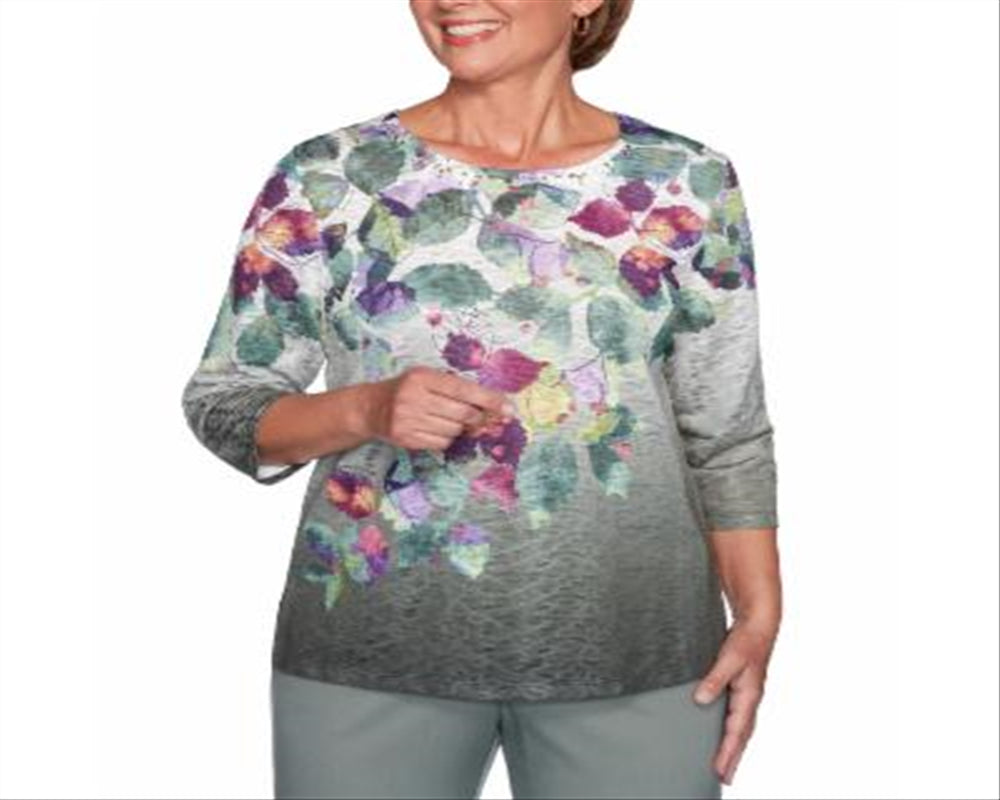 Alfred Dunner Women's Loire Valley Falling Leaves Tee Gray Size Petite Medium