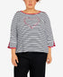 Alfred Dunner Women's Checking In Embroidered Heart Striped Top Black Size 1X