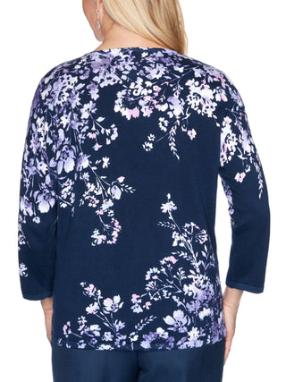 Alfred Dunner Women's Wisteria Lane Asymmetric Floral Print Sweater Blue Size 3X