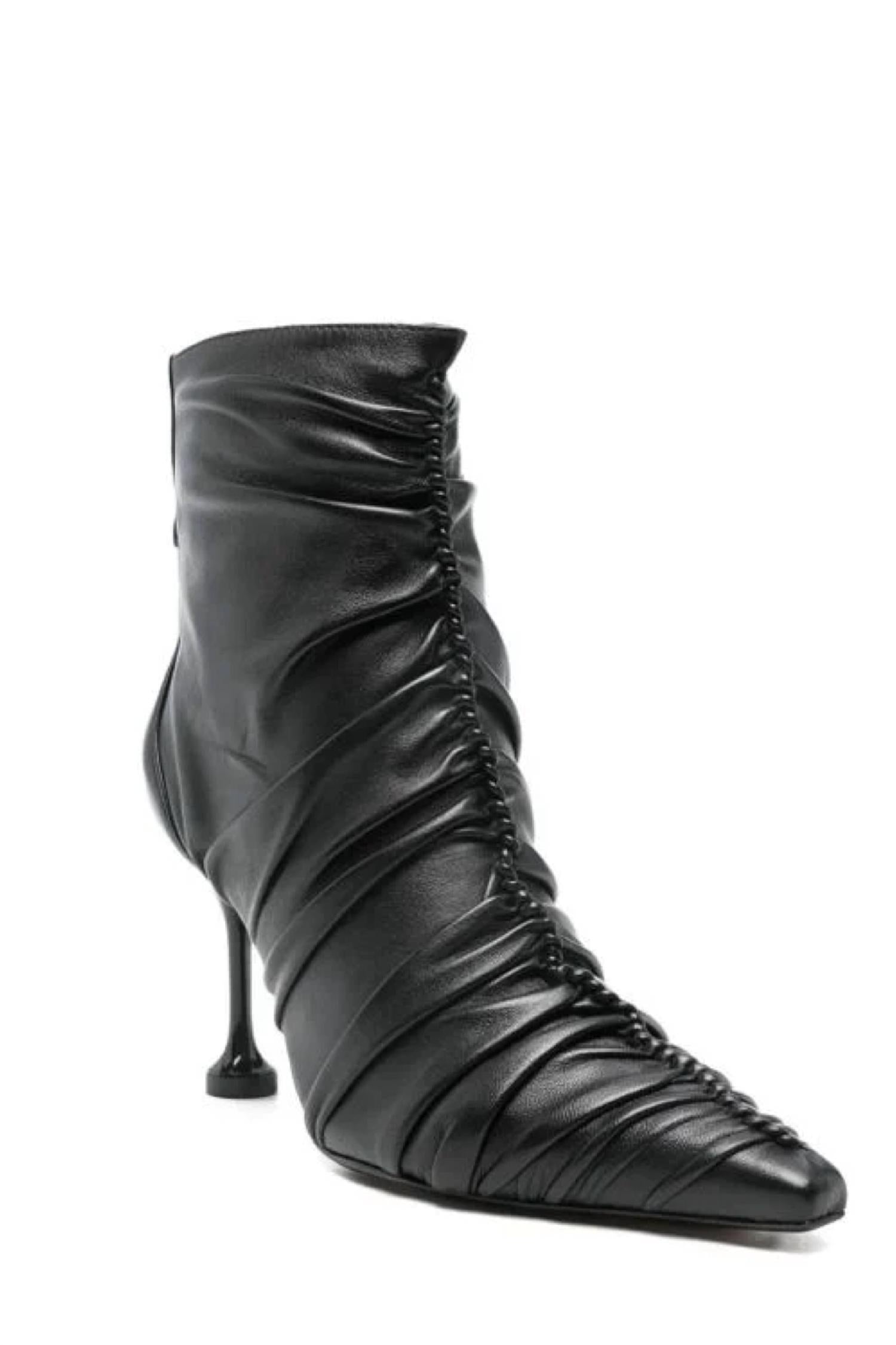Say hello to the perfect, most versatile boot. The ankle height makes this style easily transition from day to night. Wear them with your favorite skinny jeans and tee for a more laid back look, or pair them with your favorite mini dress and jacket for a night out on the town. Elevate your fall wardrobe with the Women's Dannia 85 Booties by ALEXANDRE BIRMAN, expertly crafted from luxurious black leather. These ankle booties feature a sophisticated pointed toe and a chic back zip closure for easy wear. Standing tall with a 3.4-inch spool heel, they perfectly blend Western-inspired style with a high-heeled silhouette. Ideal for a holiday party, these booties are a must-have for Thanksgiving occasions.
