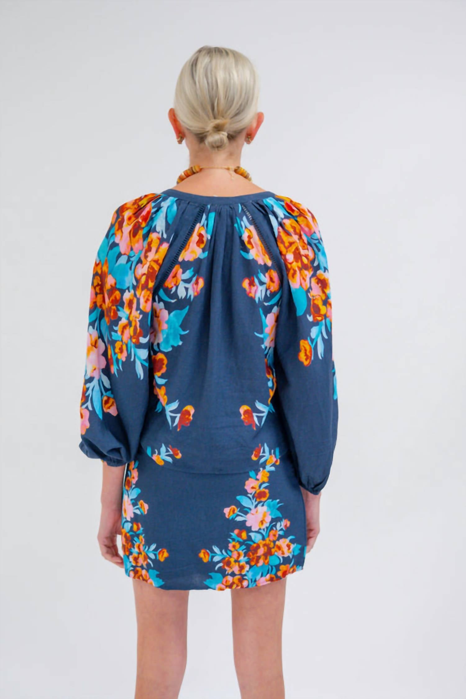 Elevate your summer wardrobe with the Janis Mini Skirt by ALLISON NEW YORK, featuring a charming navy floral pattern. Designed with a flattering mini length, this skirt is crafted from a comfortable 55% Viscose and 45% Linen blend. Closure is secured with a tie, ensuring both style and ease of wear. For best care, hand wash and lay flat to dry.